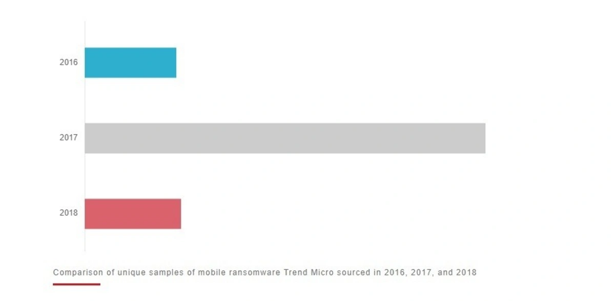 Trend Micro Mobile App Reputation Service (MARS) в прошлом году выявил 112 965 уникальных мобильных вредоносных кодов, что по сравнению с 2017 годом меньше на 76%.
