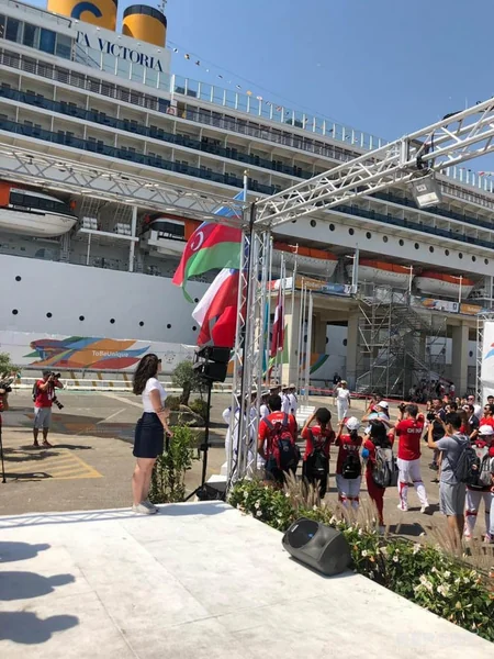 На XXX Всемирной летней универсиаде в итальянском городе Неаполь в честь азербайджанской делегации состоялась церемония поднятия азербайджанского флага.