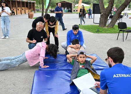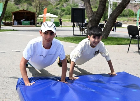 Как сообщили Report в министерстве, в рамках мероприятия на Лачынском городском бульваре граждане разных возрастных групп выполняют различные спортивные упражнения.