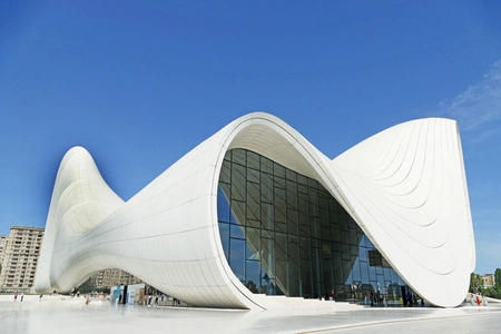 Центр Гейдара Алиева фотограф называет "экстраординарным" с "элегантными изогнутыми линиями, минималистским дизайном". По его словам, стиль Захи Хадид легко узнаваем.