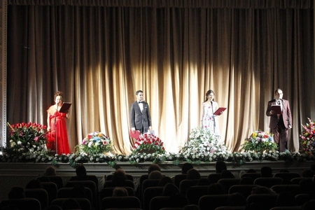 Министр от имени коллектива театра, театральной общественности страны выразил благодарность главе государства за заботу о театре. Было отмечено, что распоряжением президента страны по случаю 50-летнего юбилея театра деятелям культуры присуждены почетные имена и медаль "Терегги". А.Гараев вручил государственные награды членам коллектива.