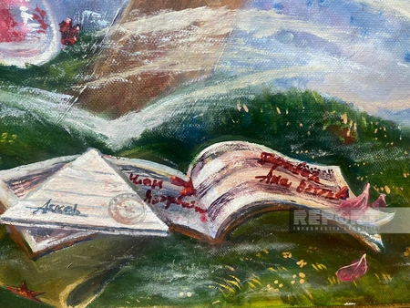 На выставке были представлены натюрморты с национальным колоритом, портреты и подмосковные пейзажи.
