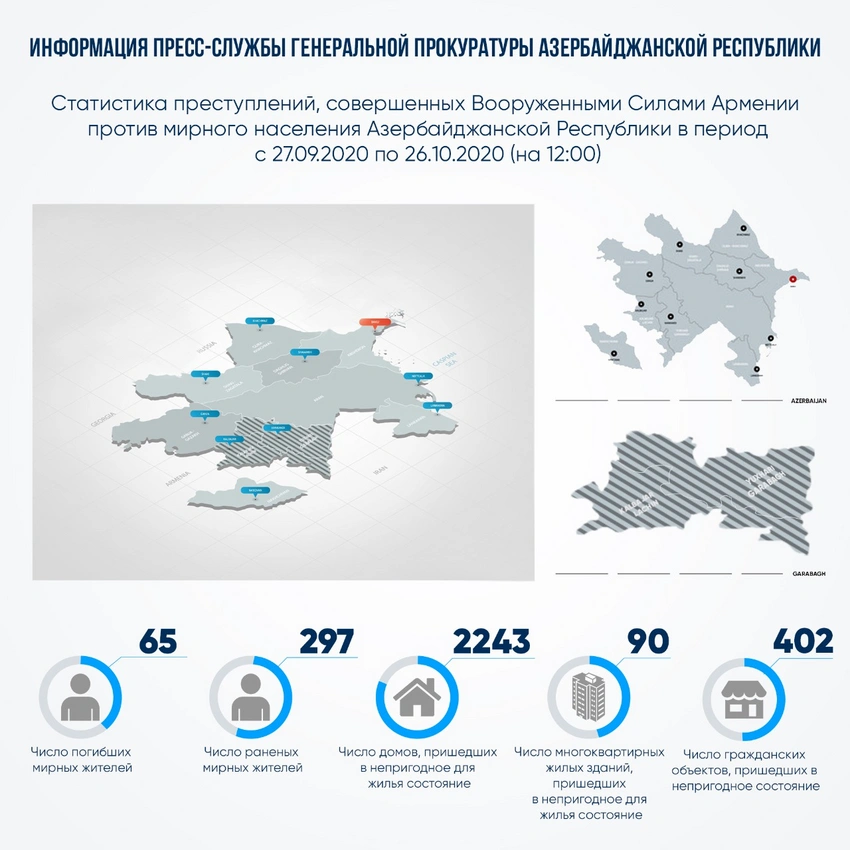 Генеральная прокуратура Азербайджана обнародовала новые данные в связи с атаками на мирных жителей Азербайджана со стороны Армении.