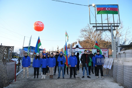 Несмотря на морозную погоду, акция протеста на дороге Ханкенди-Лачын против незаконной эксплуатации полезных ископаемых в Карабахском экономическом районе Азербайджана продолжается уже 40 дней.