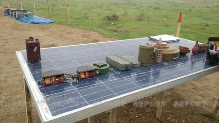 "Ведутся работы по разминированию участка на 17-м км дороги Шуша-Физули, пролегающем через села Алханлы-Сеидахмедли Физулинского района. Обнаружено пять боеприпасов, 207 противотанковых и 168 противопехотных мин.