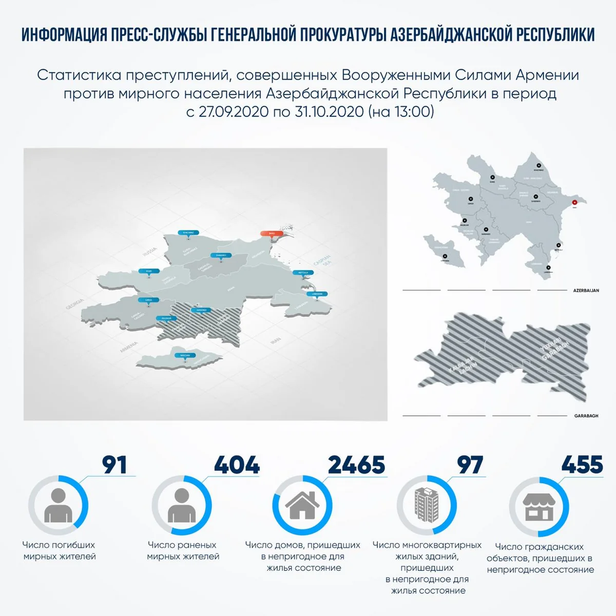 Генеральная прокуратура Азербайджана распространила новую информацию об атаках Армении на гражданское население Азербайджана.