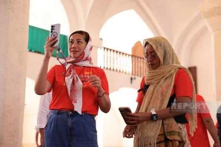 Как сообщает корреспондент Report, гостям была предоставлена информация о разрушениях, которым подвергся религиозный памятник в период армянской оккупации.