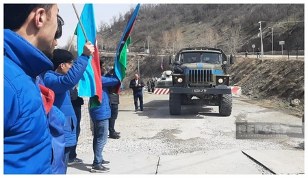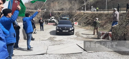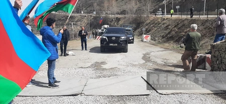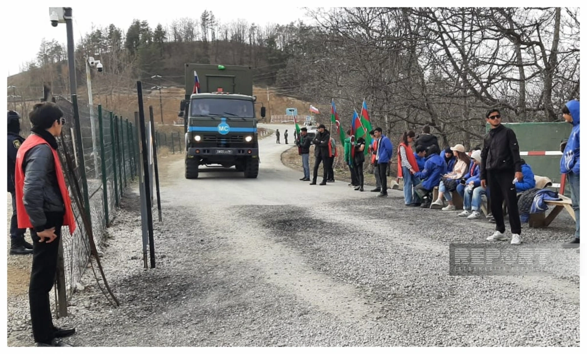 Как сообщает освещающий акцию сотрудник Report, 2 грузовых автомобиля проехали из Лачына в направлении Ханкенди, а 1 бронированный автомобиль и 2 легковых автомобиля – в обратном направлении.