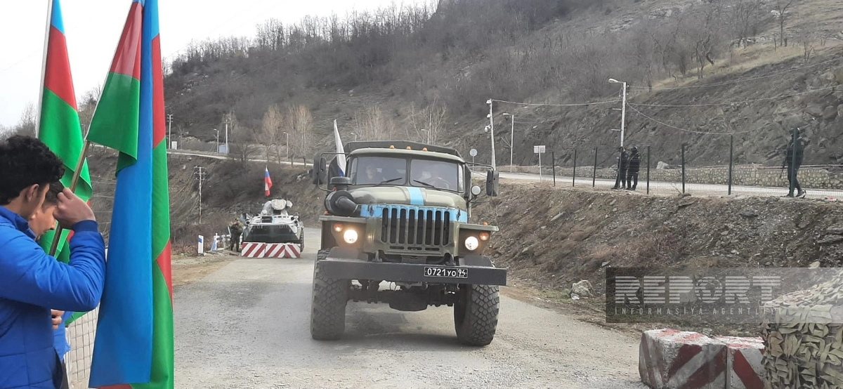 Как сообщает освещающий акцию сотрудник Report, 1 легковой автомобиль и 29 машин снабжения проехали из Ханкенди в направлении Лачына.