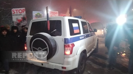 На дороге Ханкенди-Лачын, где проходит акция протеста против незаконной эксплуатации месторождений полезных ископаемых в Карабахском экономическом районе Азербайджана, в очередной раз созданы условия для беспрепятственного проезда трех автомобилей российского миротворческого контингента (РМК).