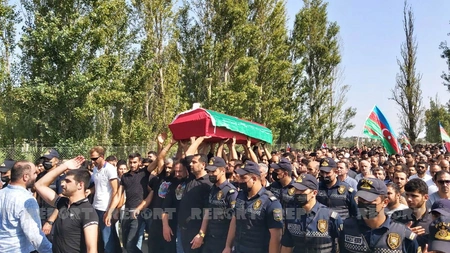 В церемонии прощания приняли участие представители общественности, военнослужащие и семьи шехидов. Трехцветный флаг, которым был накрыт гроб, был вручен отцу шехида главой Исполнительной власти города Лянкяран Талехом Гарашовым.