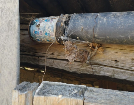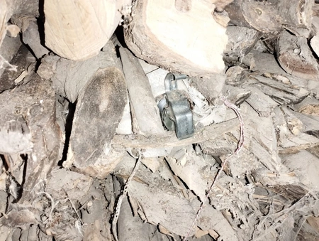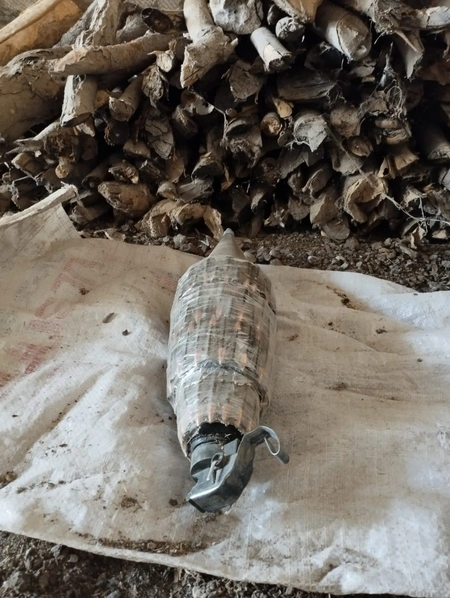В хозяйственном строении, примыкающем к жилому дому, среди кучи дров была обнаружена одна боеголовка ракеты ПГ-7Л, а также самодельное взрывное устройство.