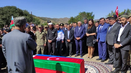 В похоронах приняли участие родственники шехида, сотрудники Исполнительной власти Товузского района, представители правоохранительных органов и общественности, военнослужащие и местные жители.