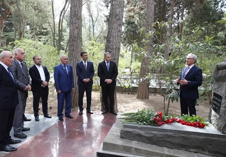 Затем была почтена память великого мыслителя, основателя азербайджанской национальной печати Гасан бека Зардаби, возложены венки к его могиле.