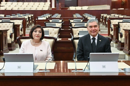 Делегация во главе с председателем Халк Маслахаты Туркменистана Гурбангулы Бердымухамедовым, находящаяся с визитом в Азербайджане, посетила Милли Меджлис (ММ).