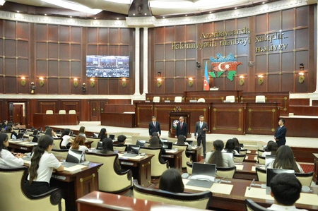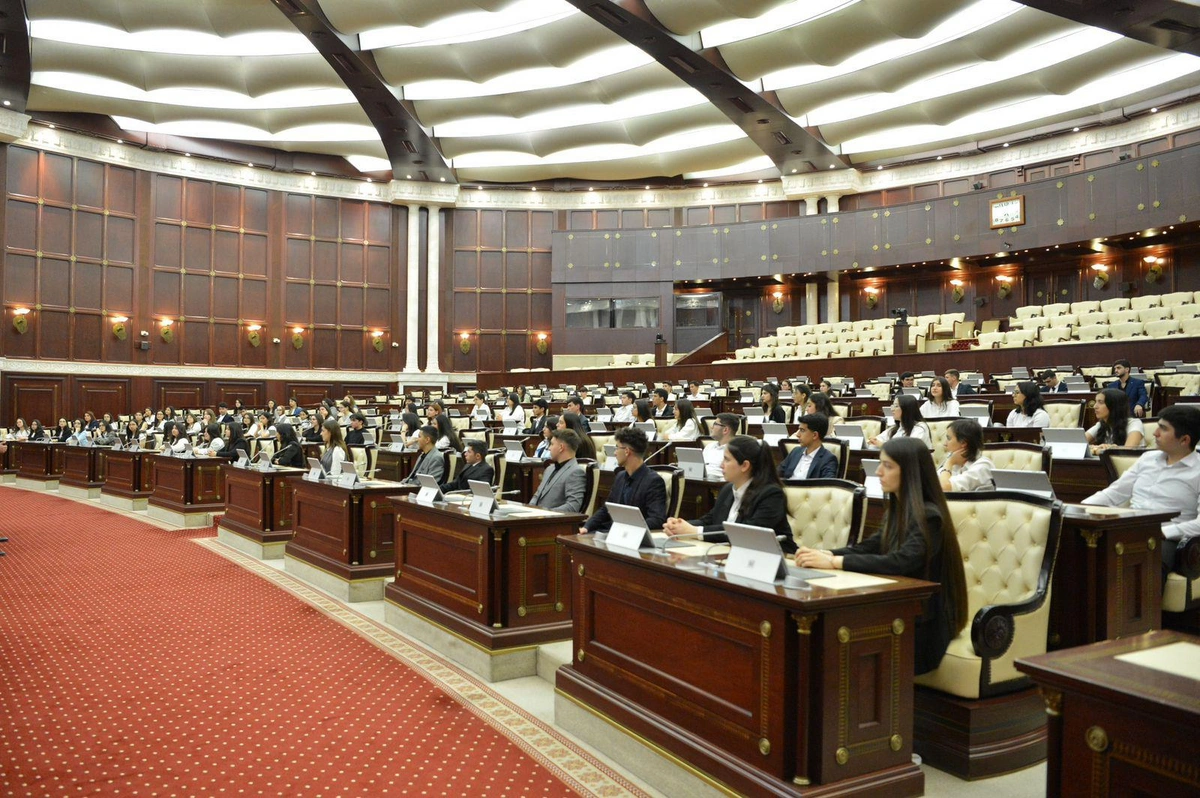 В преддверии Дня независимости и в рамках Года конституции и суверенитета в Милли Меджлисе Азербайджана прошла встреча со студентами Карабахского университета, обучающимися по специальности "Юриспруденция".