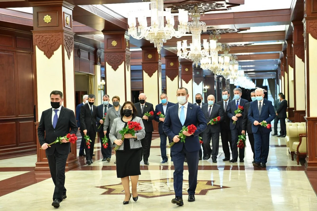 Как сообщает Report, председатель Милли Меджлиса Сахиба Гафарова, первый заместитель председателя Али Гусейнли и заместитель председателя Адиль Алиев возложили цветы к памятнику великому лидеру.
