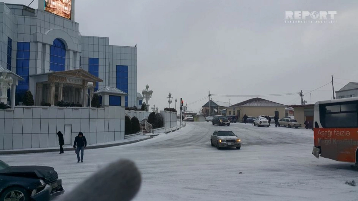 Гололедица на дорогах в Баку привела к серьезным проблемам в движении автомобилей - ВИДЕО