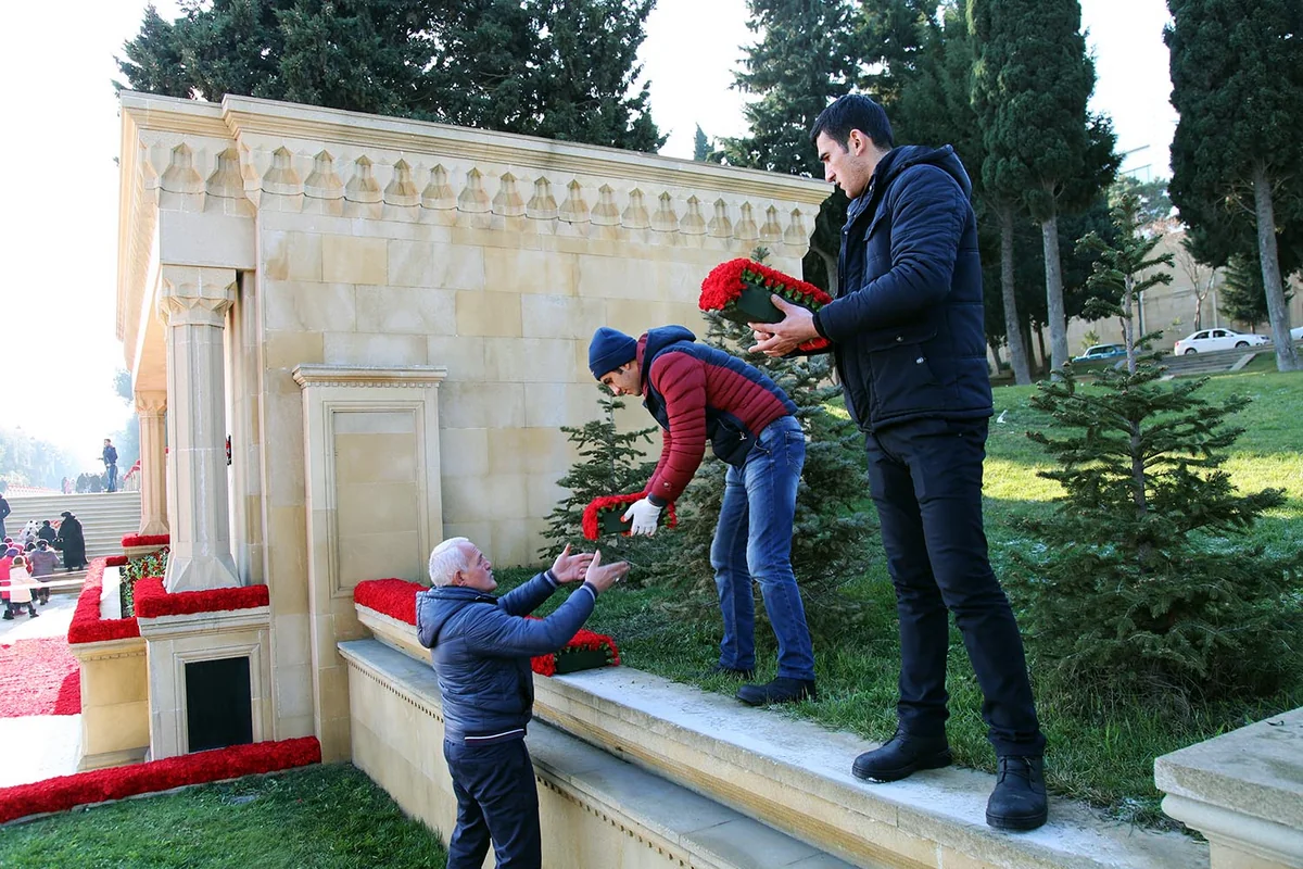 Баку. 19 января. REPORT.AZ/ С сегодняшнего утра тысячи людей приходят в Аллею шехидов, чтобы почтить память шехидов, отдавших жизни за свободу и территориальную целостность Азербайджана.