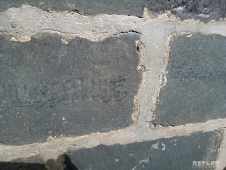 Гах. 8 октября. REPORT.AZ/ В селе Илису Гахского района на камнях в стене частного дома 200-летней давности обнаружены необычные надписи. Владелец собственности обнаружил на речных камнях, использованных при строительстве дома, непонятную надпись. Со стороны кажется, что они написаны на арабском языке. Надписи появляются, только если на камни плеснуть водой.