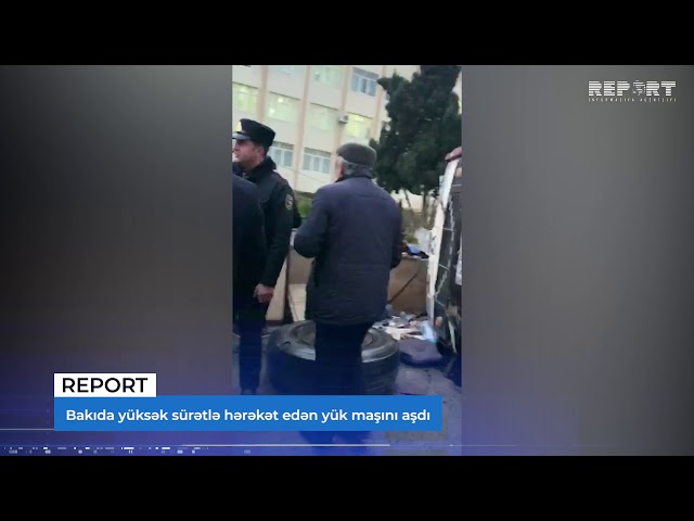 В сети распространились видеокадры перевернувшегося в Баку грузового автомобиля.