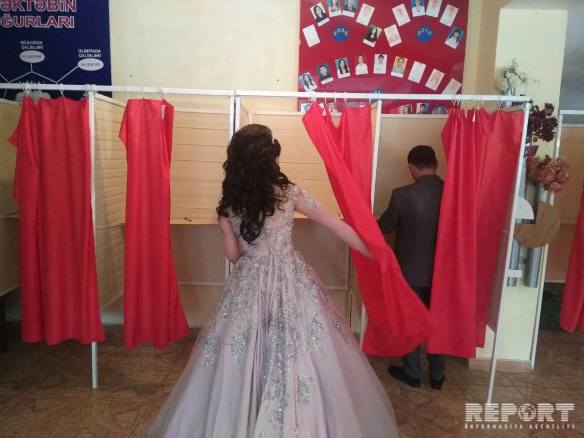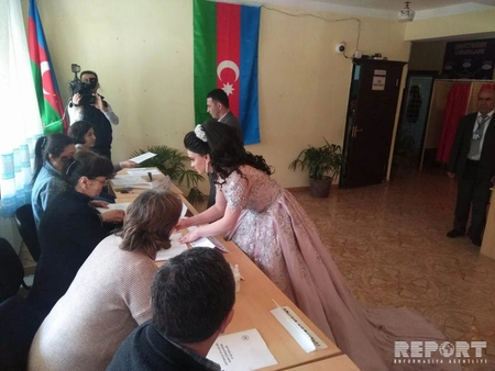 Как сообщает северо-западное бюро Report, жители района – Эльгюн Айдынов и Саадат Мовлудзаде, зарегистрированные по 2-му избирательному участку 112-го Гахского избирательного округа, проголосовали до церемонии бракосочетания.