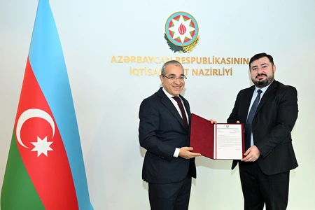 Министр экономики Микаил Джаббаров провел встречи с победителями третьего конкурса Yüksəliş Асадом Гурбанзаде и Фаридом Исаевым.
