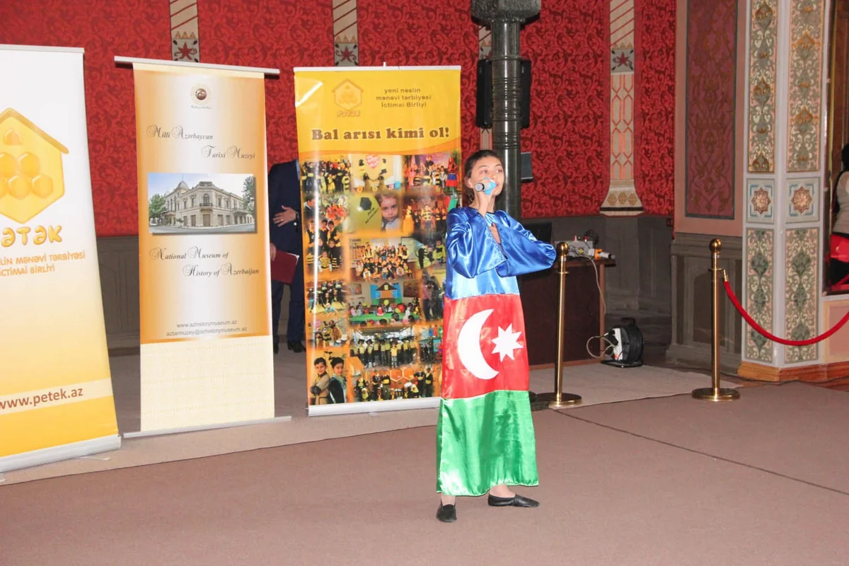 Председатель Общественного объединения морального воспитания молодого поколения "Петек" ("Pətək") Севиндж Аскерова сказала, что цель мероприятия заключается в усвоении учениками информации об истории, создании флага Азербайджана, пройденном в течение 100 лет сложном и почетном пути. Она сказала, что государственный флаг – большое наследие для будущих поколений.