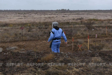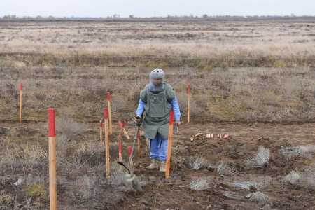 "Мы обращаемся к лицам, участвующим в строительных работах, и просим быть осторожными на этих территориях, пользоваться только определенными, очищенными от мин дорогами. При обнаружении мин и неразорвавшихся боеприпасов, подозрительных предметов, немедленно сообщить на горячую линию МЧС 112", - сказал он.