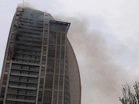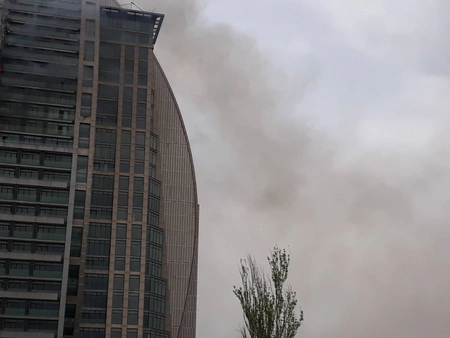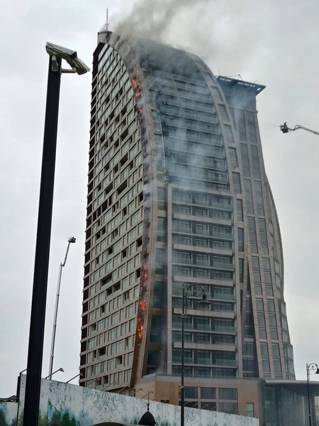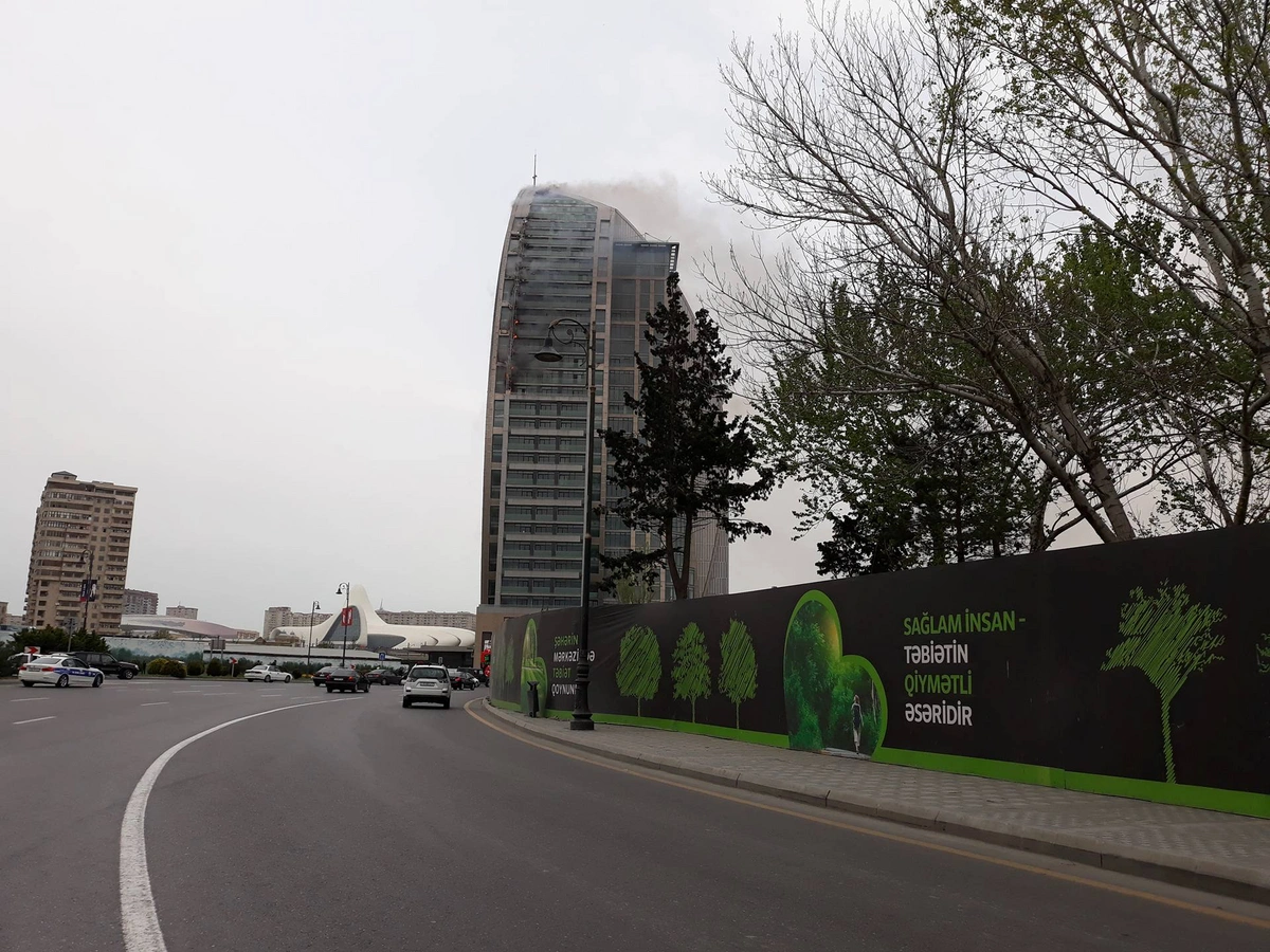 Баку. 28 апреля. REPORT.AZ/ В Баку начался пожар в бизнес-центре, ранее известном под названием Tramp Tower.