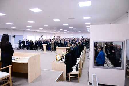 В Бакинском военном суде 21 апреля продолжился судебный процесс по уголовным делам в отношении граждан Армении Араика Арутюняна, Аркадия Гукасяна, Бако Саакяна, Давида Ишханяна, Давида Бабаяна, Левона Мнацаканяна и других, обвиняемых в совершении преступлений против мира и человечности, военных преступлений, включая подготовку и ведение агрессивной войны, геноцид, нарушение законов и обычаев войны, а также терроризм, финансирование терроризма, насильственный захват власти, насильственное удержание власти и многочисленных других преступлений.