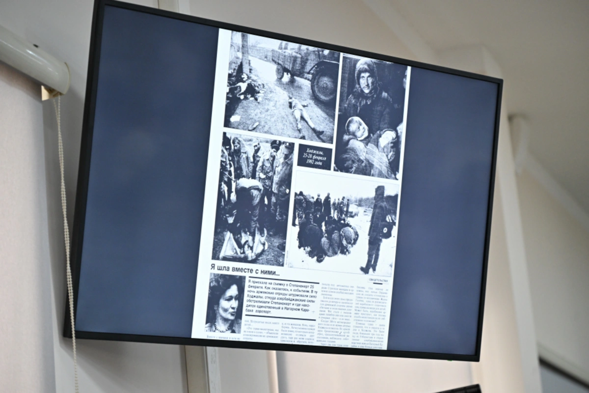 Тогда в суде была показана страница из газеты "Московские новости", опубликованная журналисткой Викторией Ивлевой (фотографии, сделанные в Ходжалы военным фотожурналистом Викторией Ивлевой, сотрудничавшей с различными газетами, также вошли в книгу "Ходжалы - свидетель военного преступления. Армения на скамье подсудимых" - ред.) с ее фотографией. М. Бекирова подтвердила, что на фотографии изображена женщина, которая им помогала.