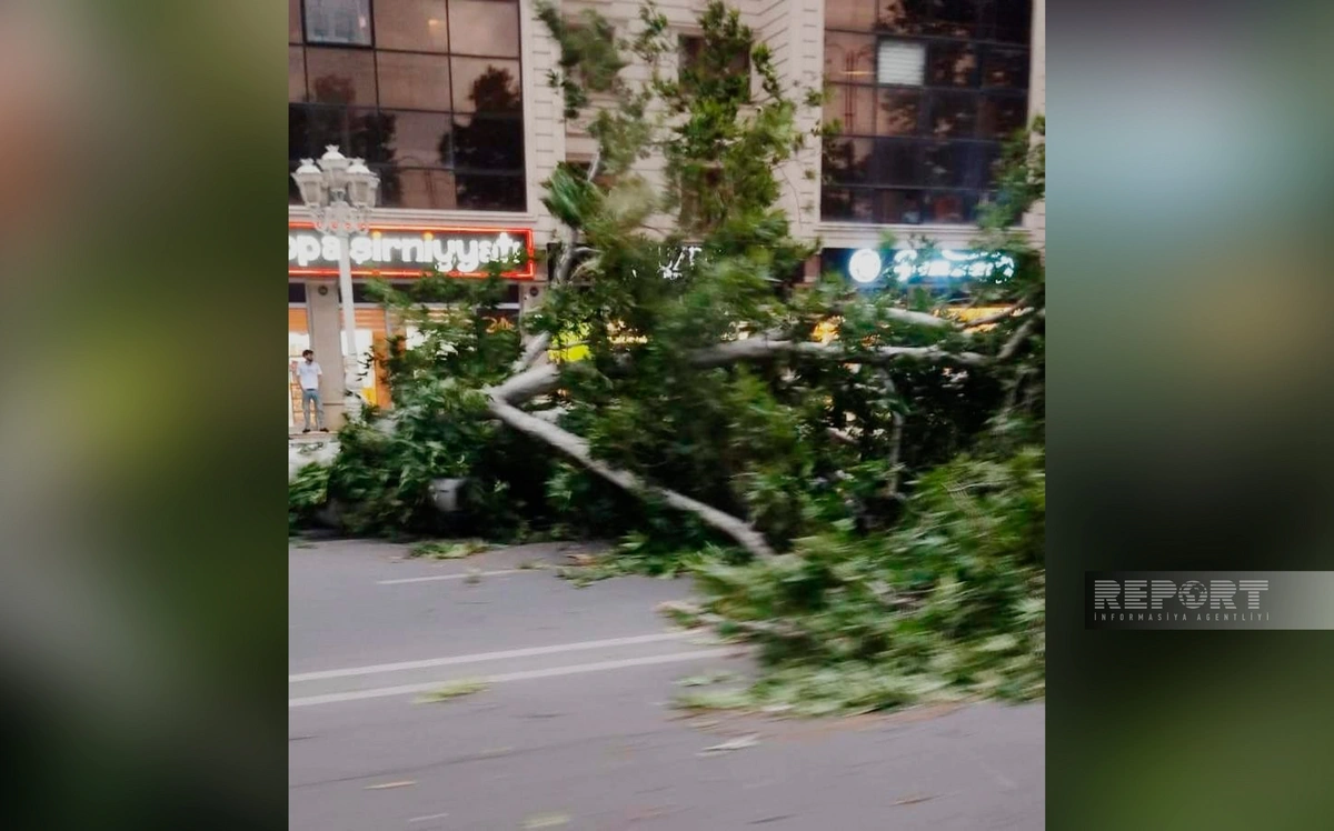 Как сообщает западное бюро Report, сильный ветер в Газахском районе повалил несколько деревьев.
