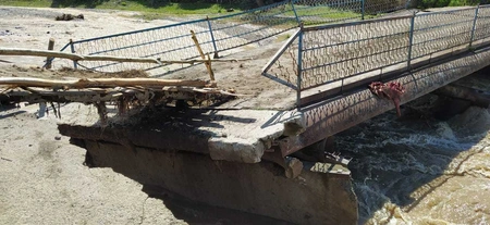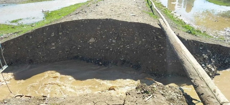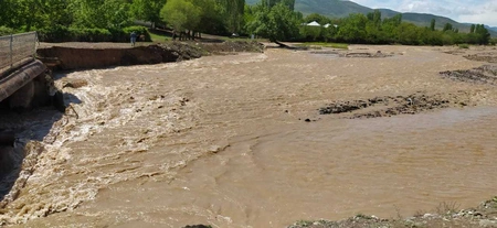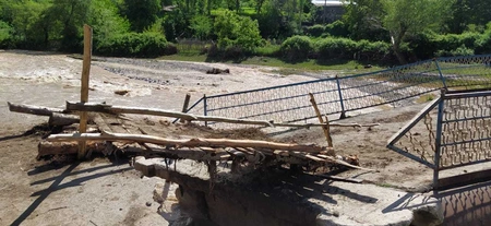 Как передает западное бюро Report, селевые потоки, образовавшиеся в результате ливневых дождей, повредили мост, пролегающий через реку на территории села Гёйчали.