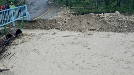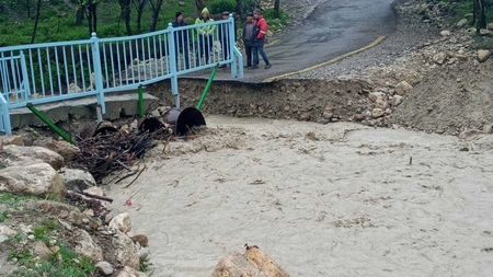 Селевые потоки разрушили мосты, построенные над рекой Чагаджыг в селе Ханагях Губинского района.