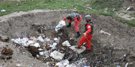 Сотрудники Агентства и отделения полиции Хызинского района осмотрели территорию скопления бытовых отходов. Для обеспечения безопасности местного населения участок был огражден полицейскими.