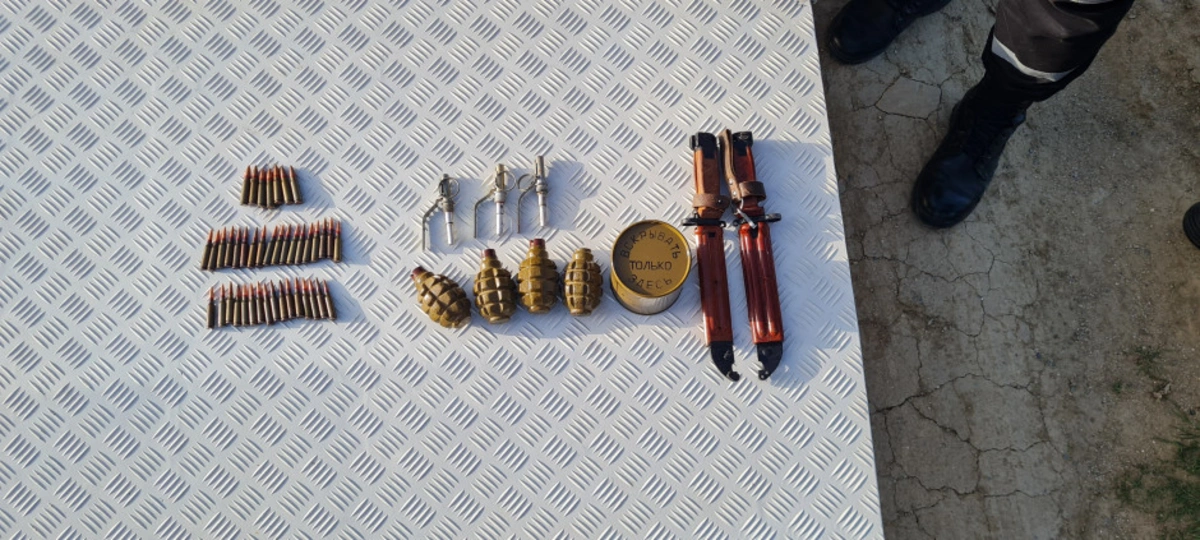 На место были направлены специалисты специального отряда по разминированию службы особо рискованных спасательных работ МЧС. С помощью служебной собаки на территории были найдены 4 боевые гранаты F-1, 13 взрывателей УЗРГМ, 2 штык-ножа, а также 41 патрон калибра 7,62 мм и 5,45 мм.