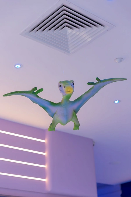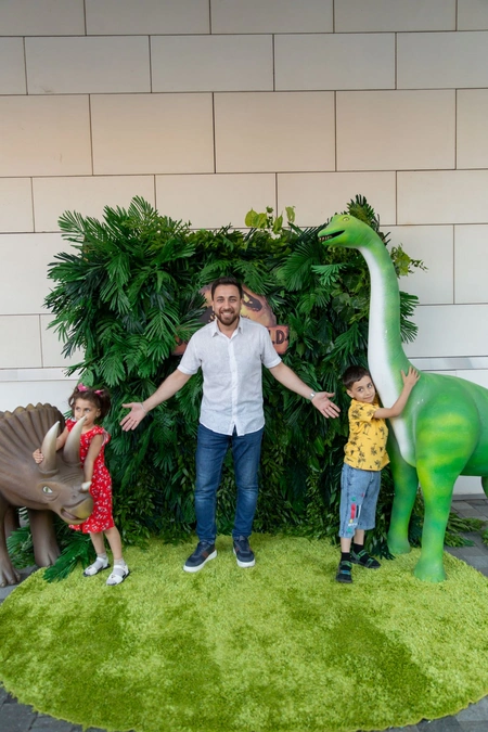 Кинотеатр будто окунулся в прошлое, в мир, где господствовали только динозавры. Изобилие растений, декорации в стиле фильма говорили сами за себя. Появление динозавра произвело фурор для гостей, вызвало бурю эмоций, и они смогли почувствовать себя героями фильма.