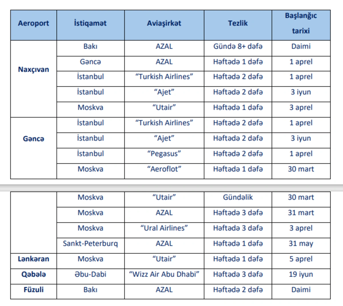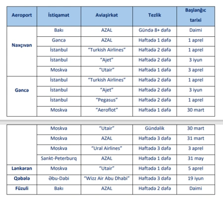 В рамках весенне-летнего расписания полетов увеличивается количество рейсов из региональных аэропортов Азербайджана и добавляются новые направления: