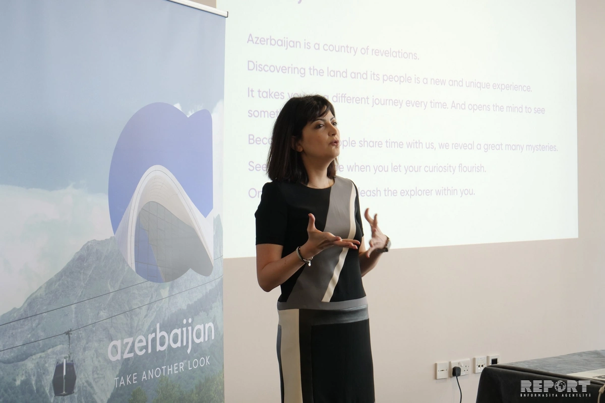 После директор бюро по брендам и маркетингу Фидан Алиева представила новый туристический бренд Азербайджана и его лого. Рассказывая о культуре и истории Азербайджана, она отметила, что страна имеет много возможностей: "Наша культура, люди, исторические красоты всегда привлекают людей. Создавая новый бренд, нашей целью было выявить еще одну красоту Азербайджана".