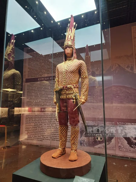 Следующим пунктом программы стал Национальный музей Республики Казахстан - крупнейший музейный комплекс страны. Участники тура получили общее представление о богатом культурно-историческом наследии Казахстана. Особое внимание было уделено главному символу казахстанской археологии - Золотому человеку, сакскому воину, обнаруженному в 1969 году в кургане Иссык. Его костюм украшен более чем четырьмя тысячами золотых пластин и изделий, выполненных в традиционном “зверином стиле”.