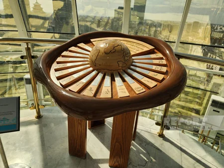 С обзорной площадки монумента, расположенной на высоте 86 метров, открывается панорама современной Астаны, сочетающей национальные традиции и современные урбанистические решения. В зале установлен деревянный глобус с 17 лепестками, символизирующими основные религиозные течения мира.