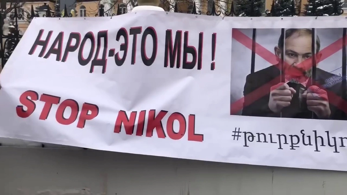 Перед зданием посольства Армении в России собрались противники премьер-министра Никола Пашиняна.