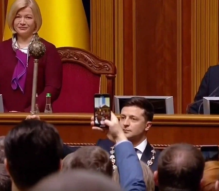 Далее Владимир Зеленский подписал текст присяги и передал его главе Конституционного суда, которая и объявила о вступлении Зеленского в должность президента Украины.