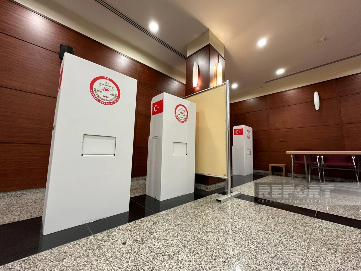 Как сообщает Report, в здании турецкого посольства уже установлены 9 урн для голосования.