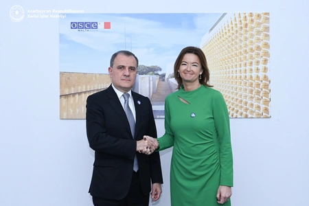 Министр иностранных дел Азербайджана Джейхун Байрамов на полях СМИД ОБСЕ в Валлетте провел встречу с коллегой из Словении Таней Файон.