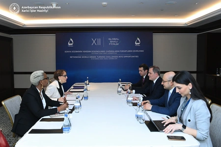 Министр иностранных дел Азербайджана Джейхун Байрамов встретился с генеральным секретарем Конференции ООН по торговле и развитию (UNCTAD) Ребеккой Гринспен.