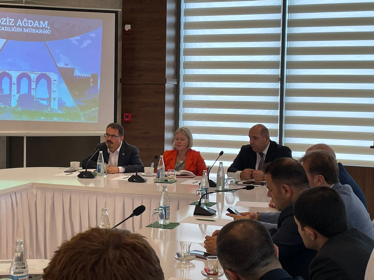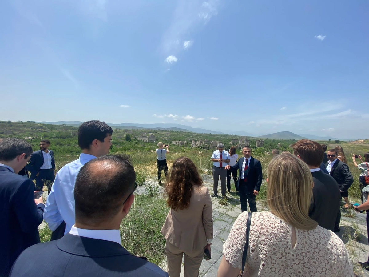 Затем члены делегации посетили освобожденный от оккупации город Агдам. Они ознакомились с руинами города Агдам, известного как «Кавказская Хиросима», увидели уцелевшую стену Драматического театра. Было отмечено, что историко-культурные и архитектурные памятники, пещеры и курганы, гробницы и надгробия также были подвергнуты актам вандализма армян.