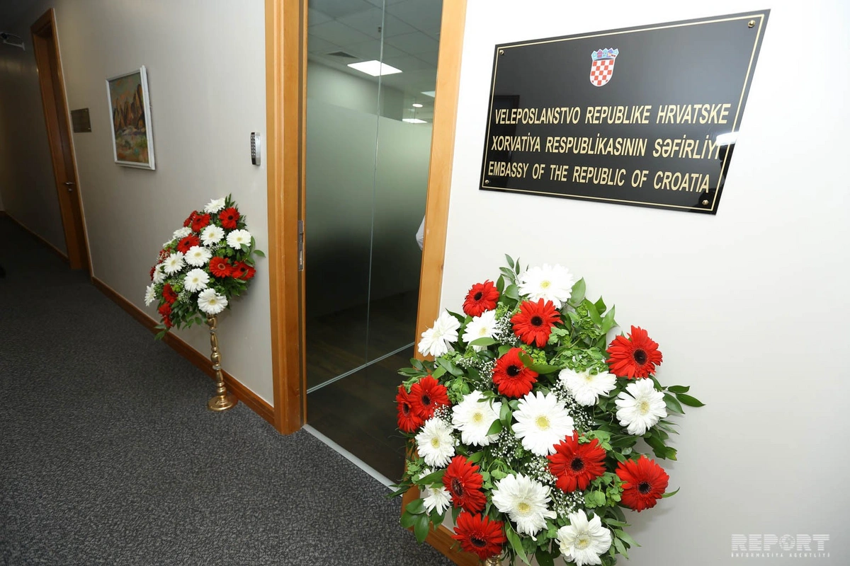 Как сообщает Report, на церемонии открытия присутствовали вице-премьер, министр иностранных и европейских дел Хорватии Мария Пейчинович-Бурич, министр налогов Азербайджана Микаил Джабаров. Они разрезали ленту в знак официального открытия посольства.