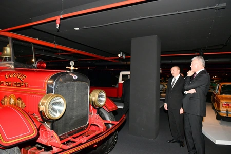 После главы государств ознакомились с выставкой классических автомобилей в Центре Гейдара Алиева.